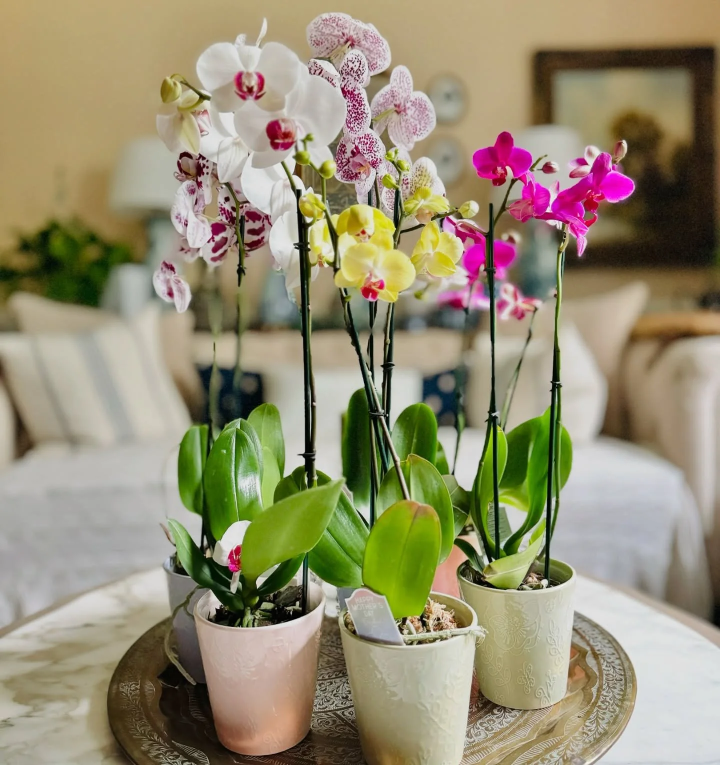 #everythingduchess #homestyle #collectedhome #layeredhome #curatedhome #curatedhomes #orchids #orchidsinbloom #orchid #orchidsofinstagram #orchidlovers #brassdecor #marbledecor